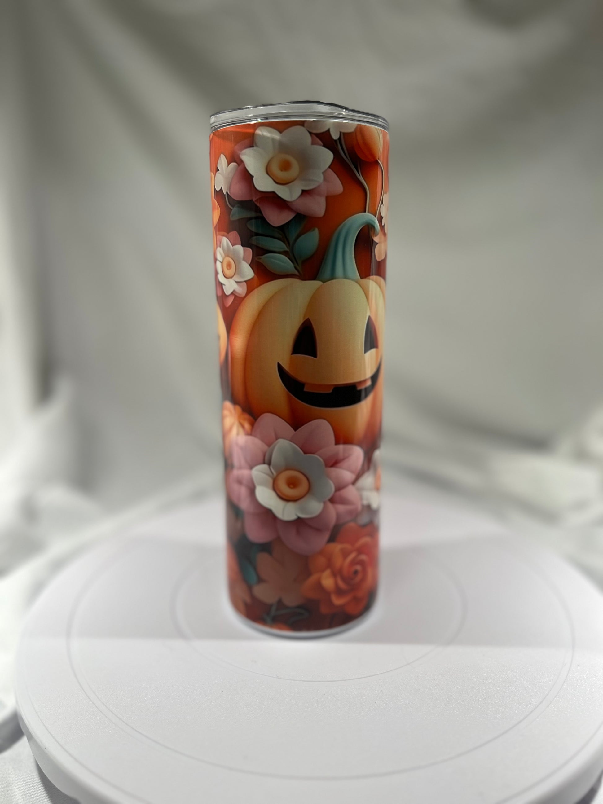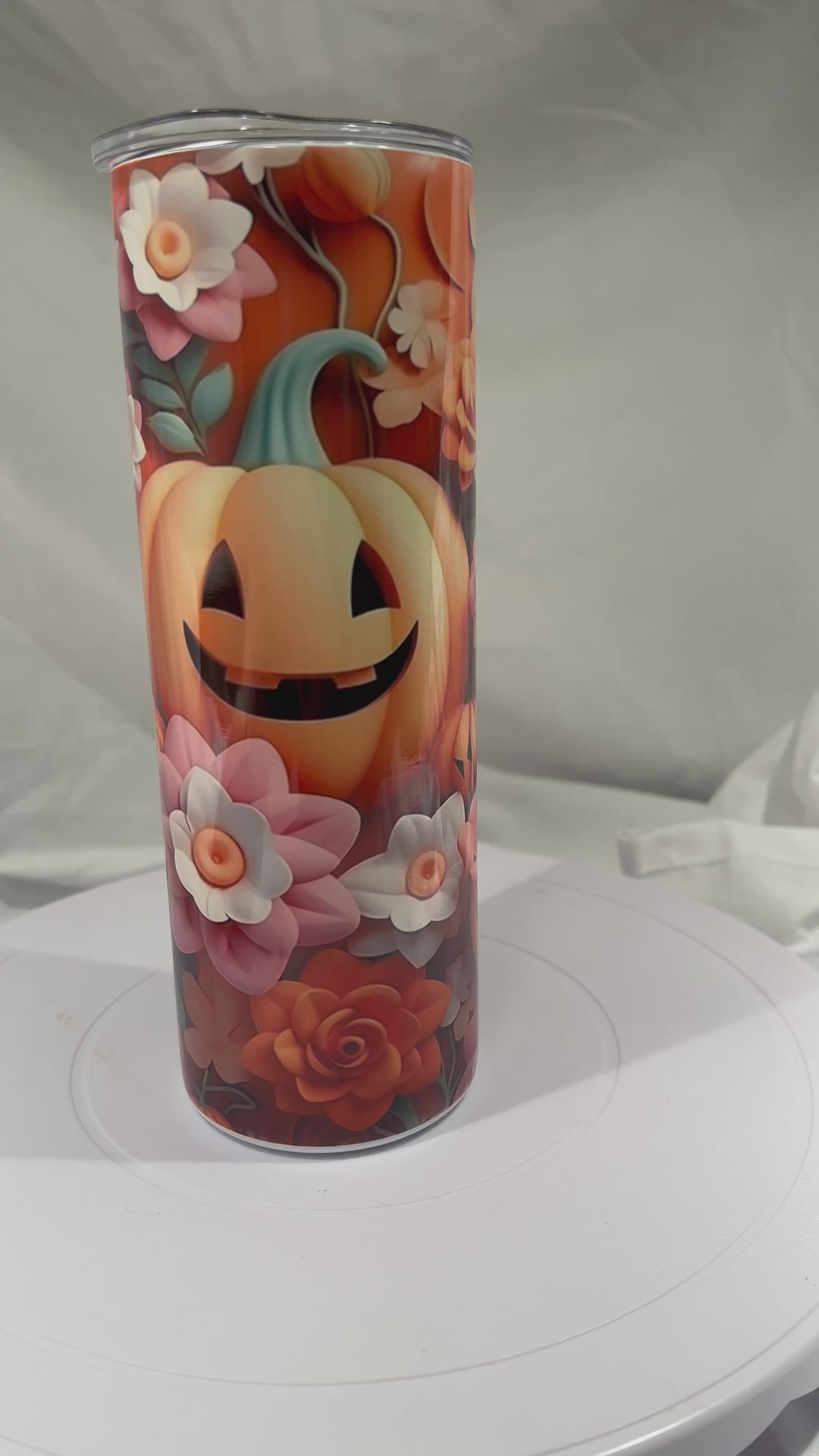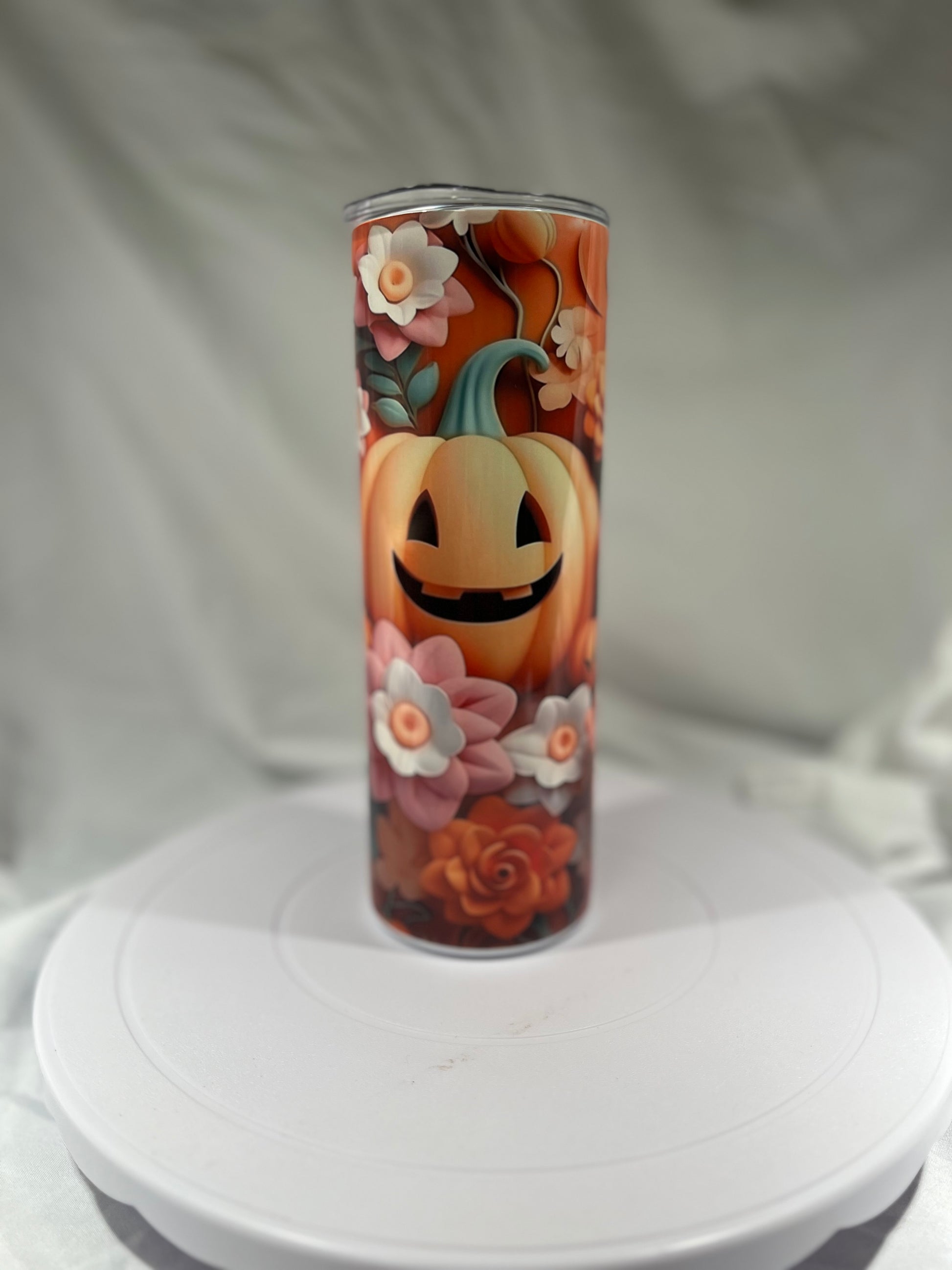 Introducing our 20 oz Stainless Steel Tumbler.! Sip your favorite drinks in style with this tumbler featuring an adorable 3D Jack O Lantern design. Perfect for keeping your drinks at the perfect temperature while showing off your unique style!