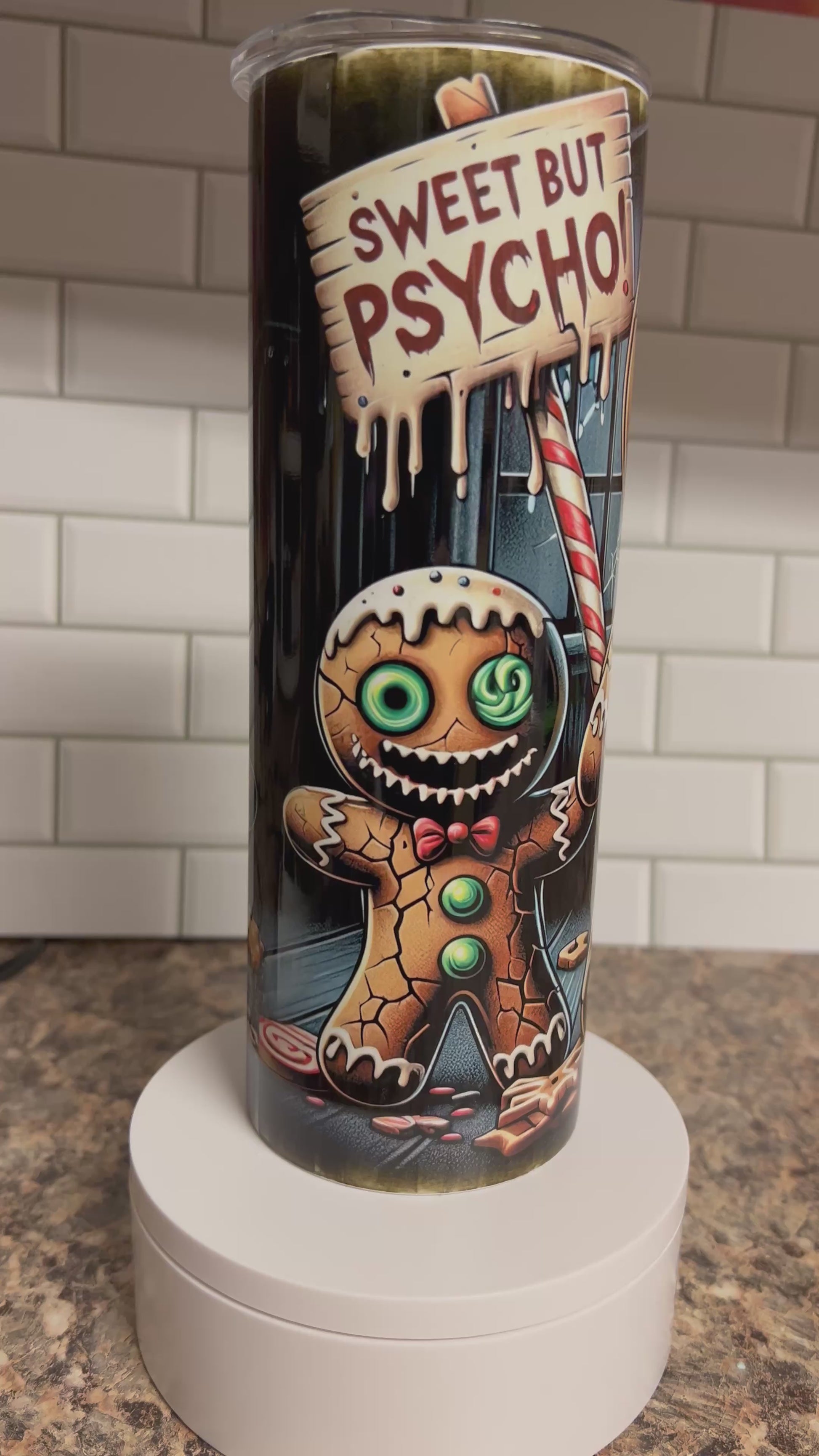 20 oz Stainless Steel Tumbler, Sweet But Psycho Gingerbread Men