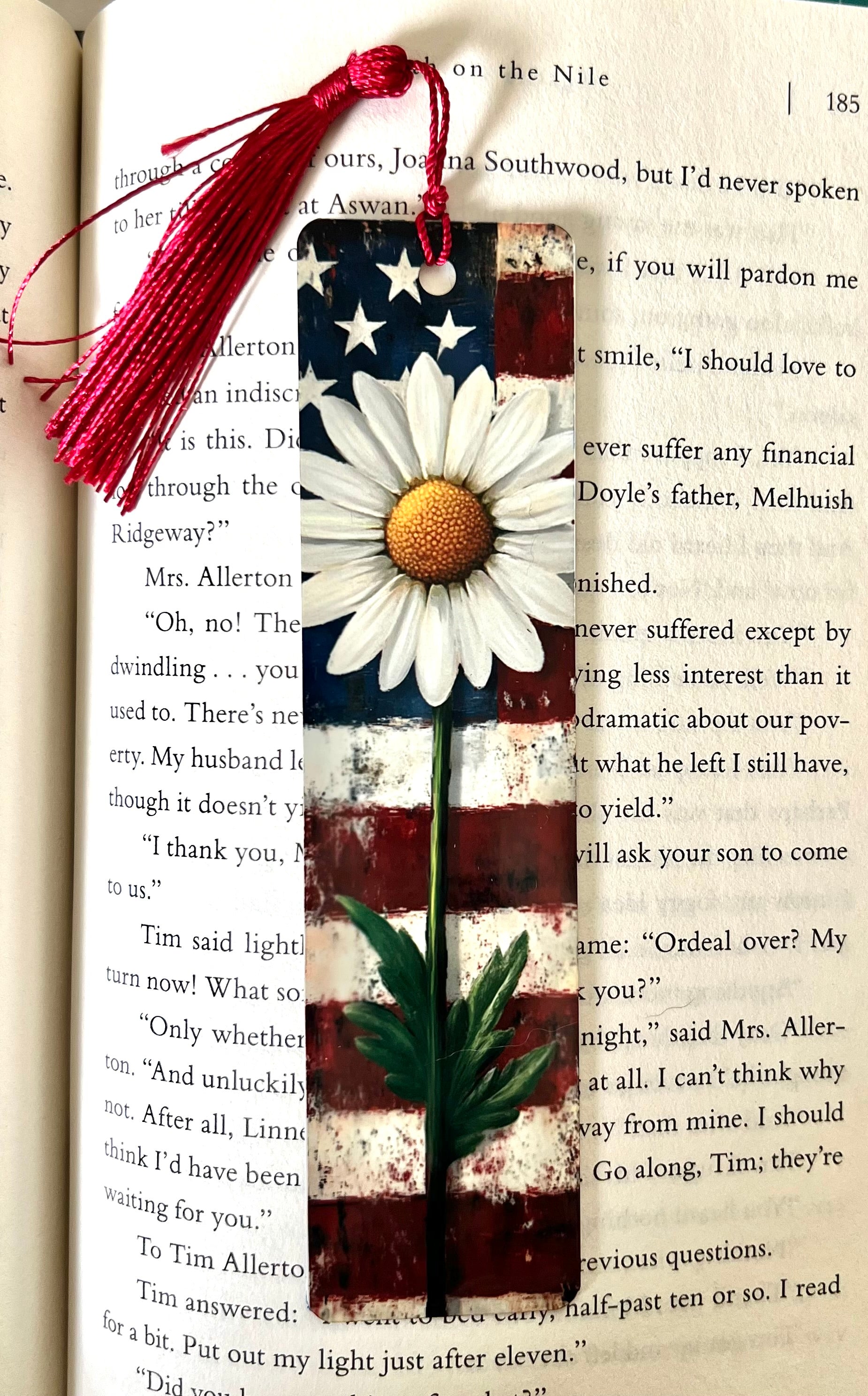 Bookmark - Metal Bookmark 1.5" x 6" with Tassel - American Flag and Daisy
