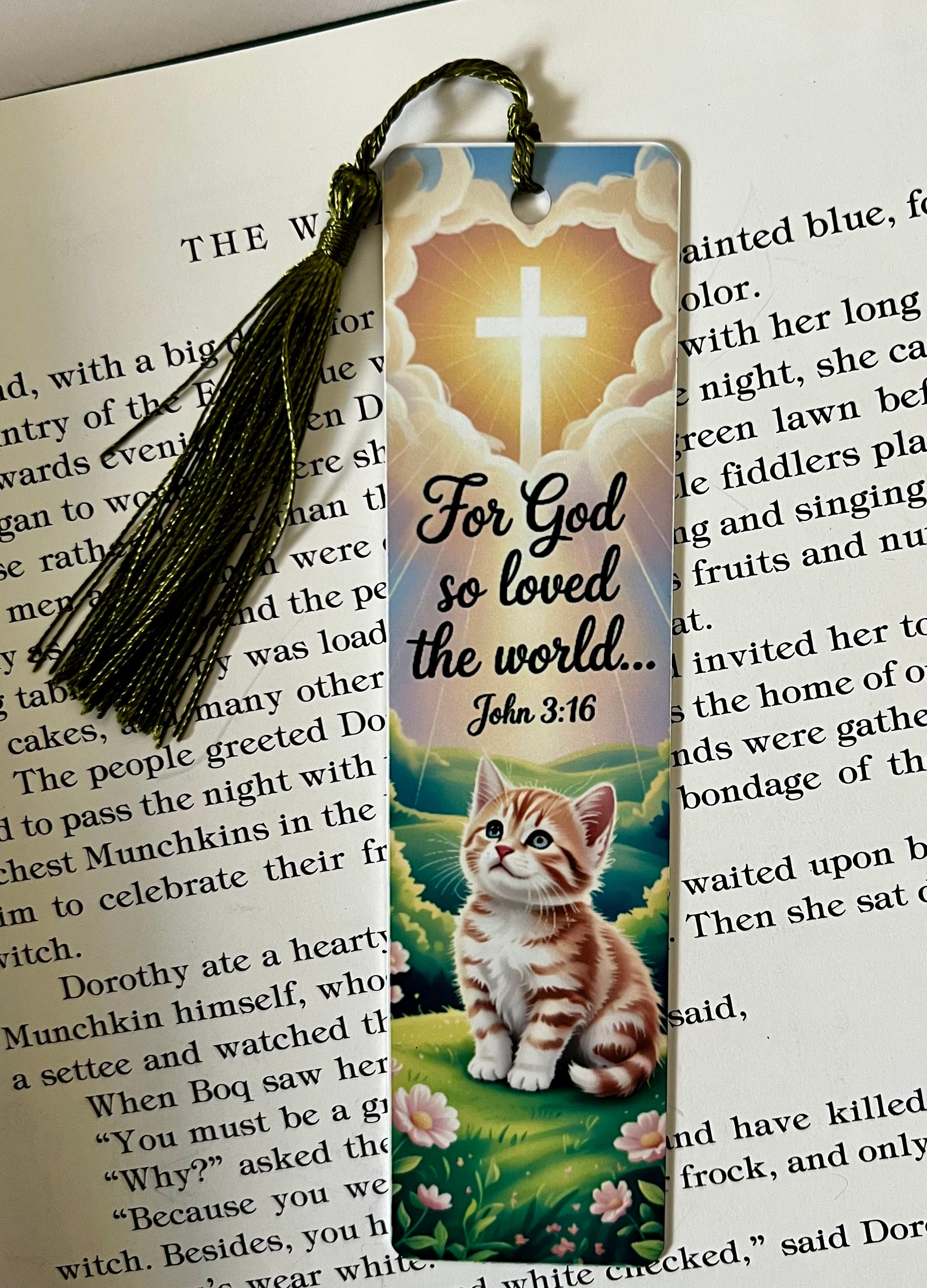 Bookmark - Metal Bookmark 1.5" x 6" with Tassel - For God So Loved The World Bible Verse
