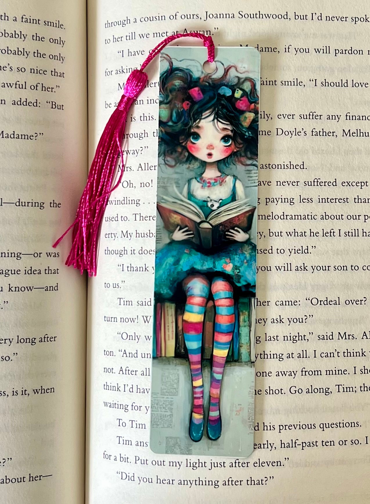 Bookmark - Metal Bookmark 1.5" x 6" with Tassel - Girl Reading Book 1
