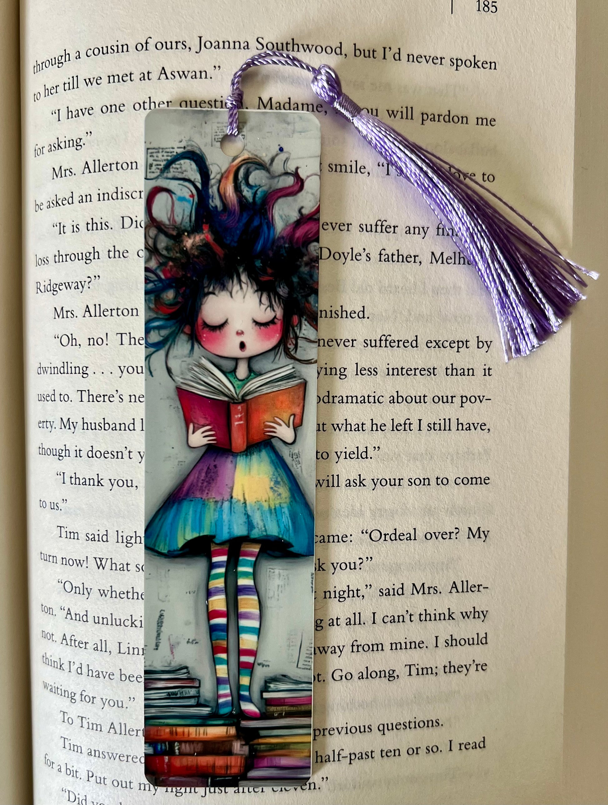 Bookmark - Metal Bookmark 1.5" x 6" with Tassel - Girl Standing and Reading
