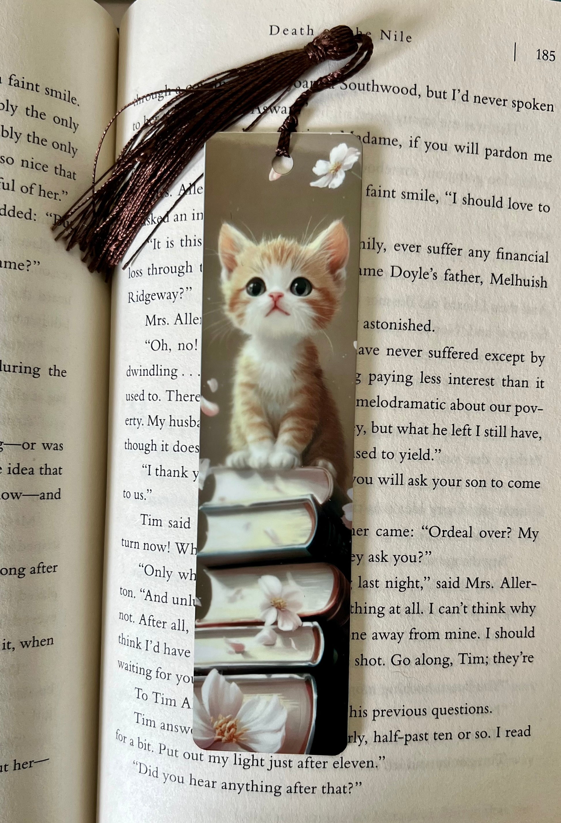 Bookmark - Metal Bookmark 1.5" x 6" with Tassel -Orange Tabby Kitten