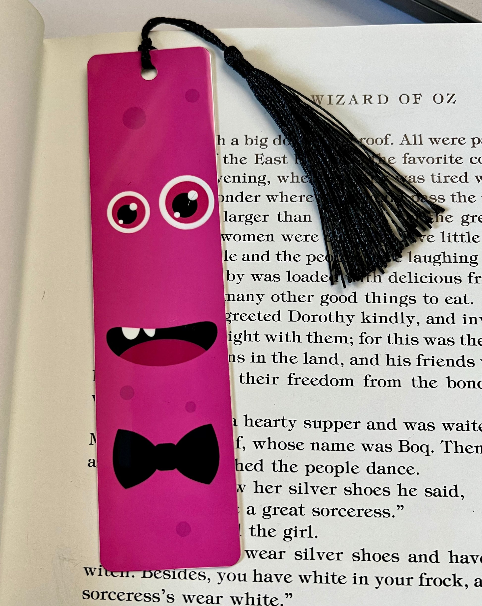 Bookmark - Metal Bookmark 1.5" x 6" with Tassel - Pink Monster