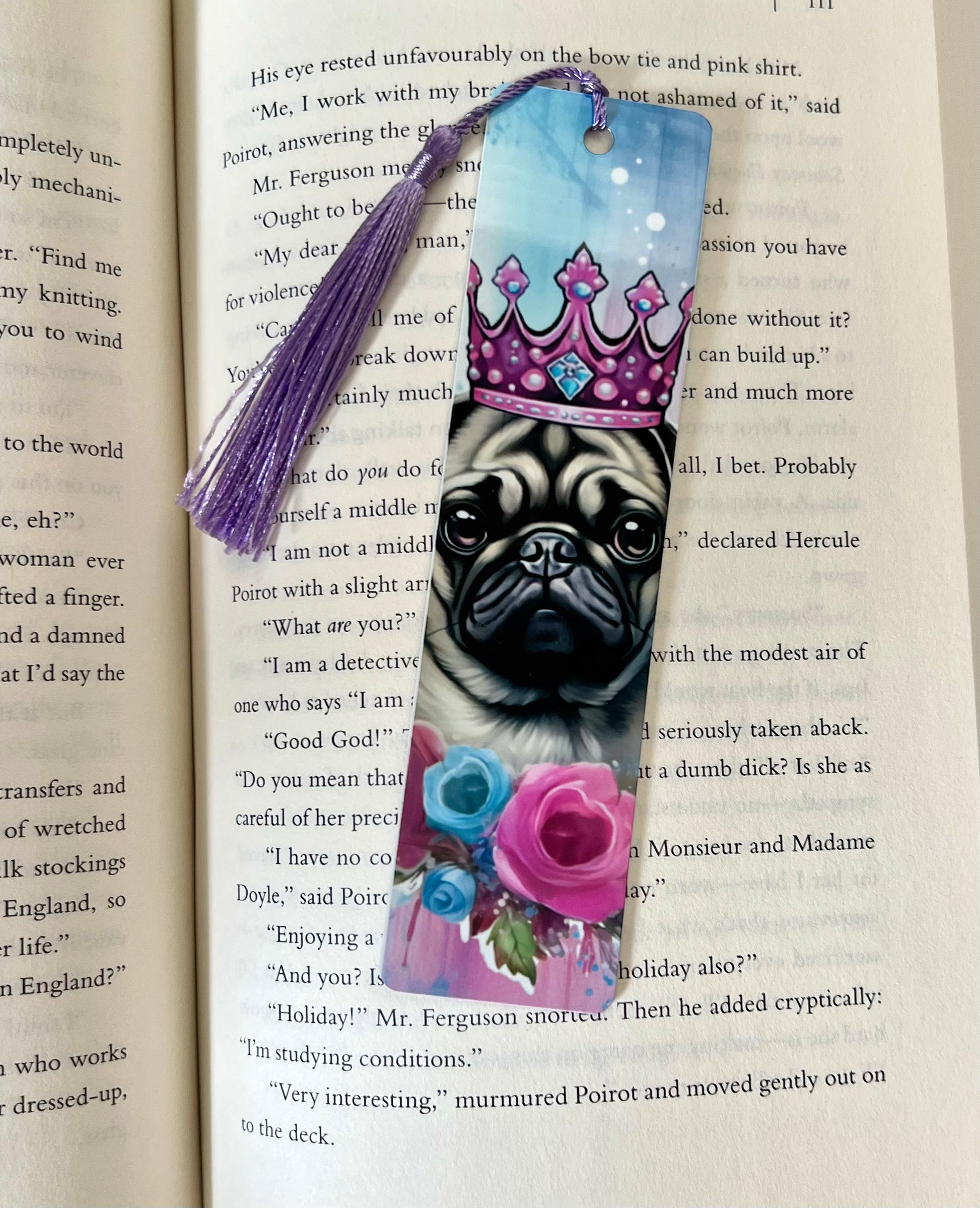 Bookmark - Metal Bookmark 1.5" x 6" with Tassel - Royal Pug