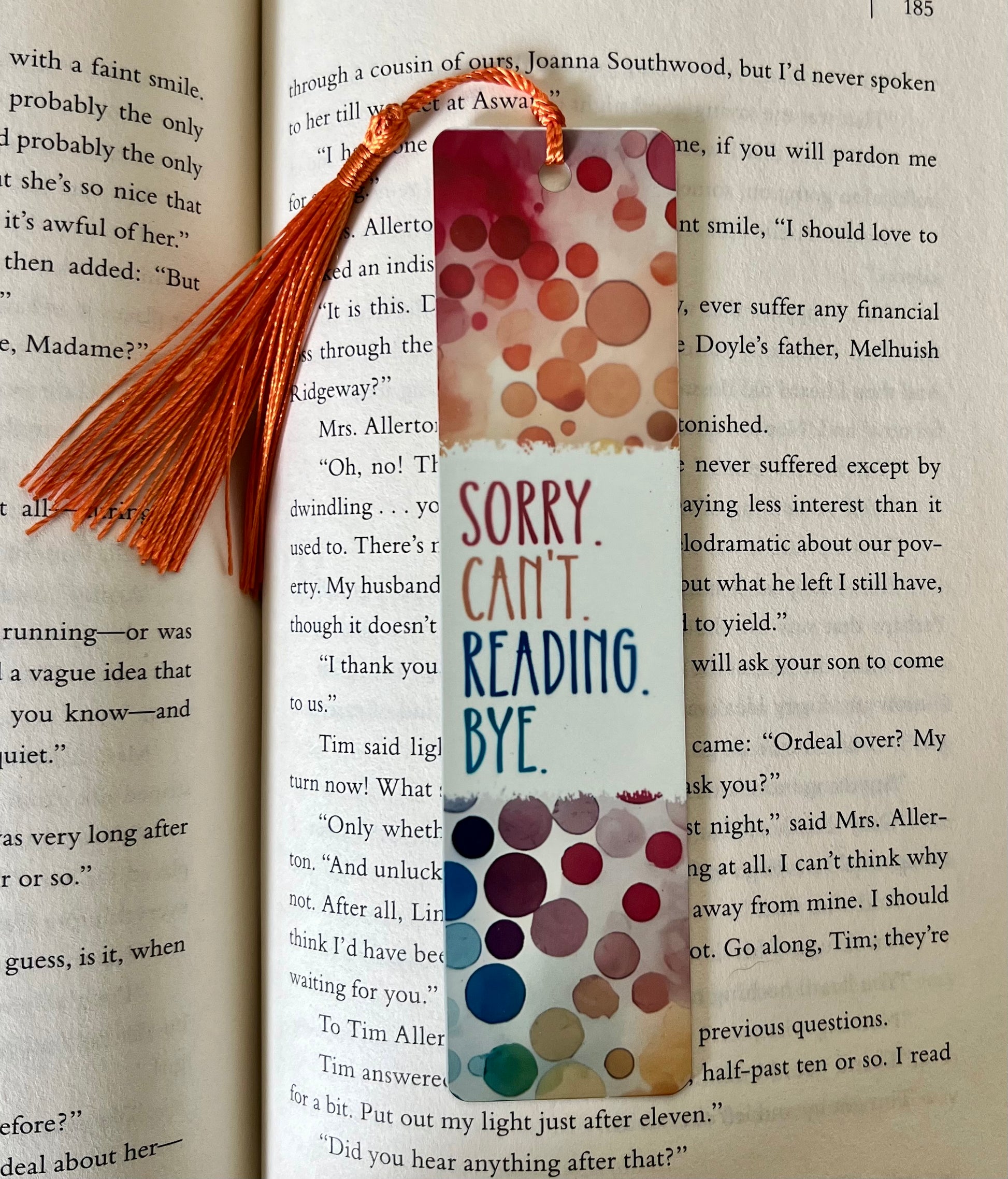 Bookmark - Metal Bookmark 1.5" x 6" with Tassel - Sorry Can't