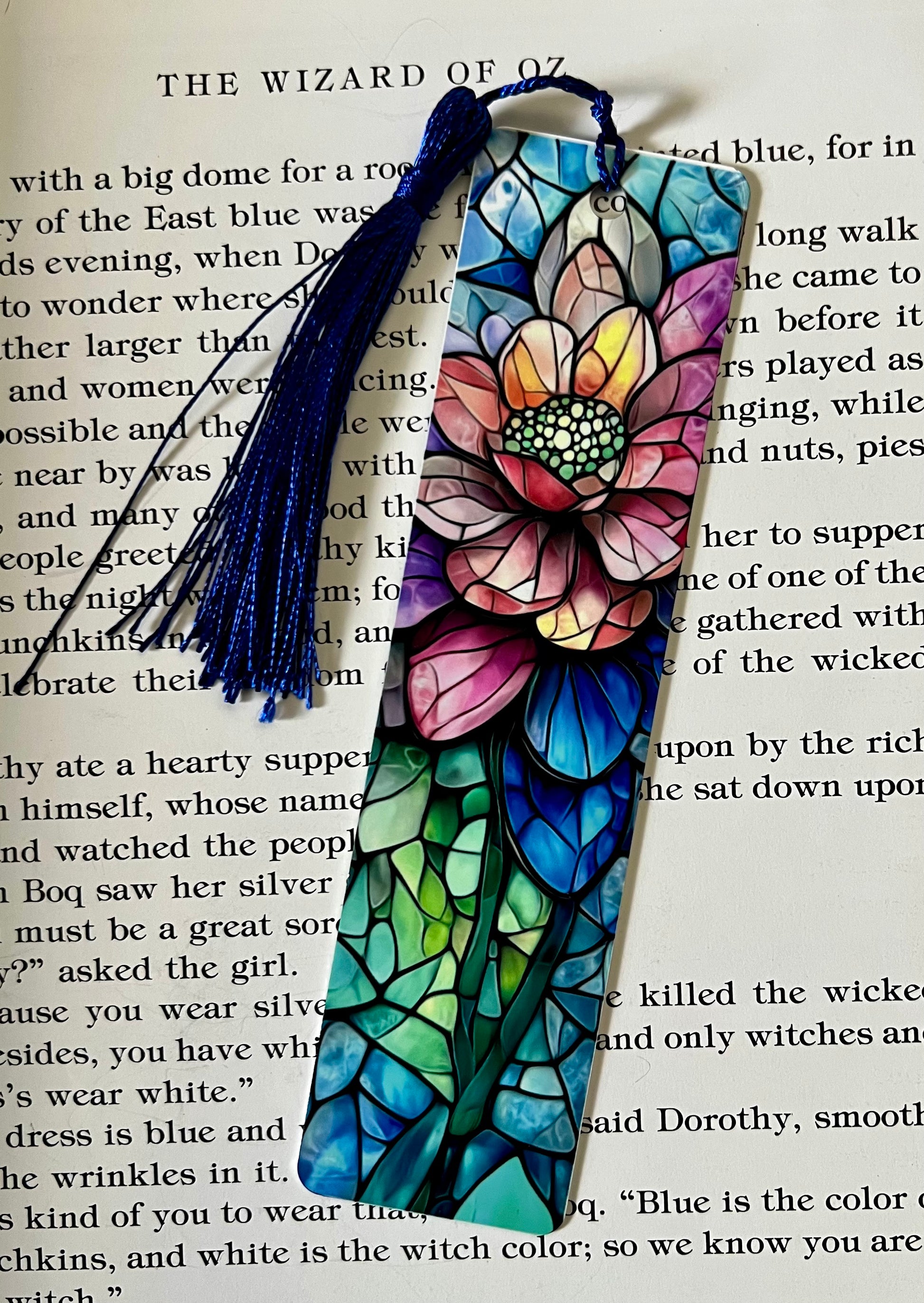 Bookmark - Metal Bookmark 1.5" x 6" with Tassel - Stained Glass Design