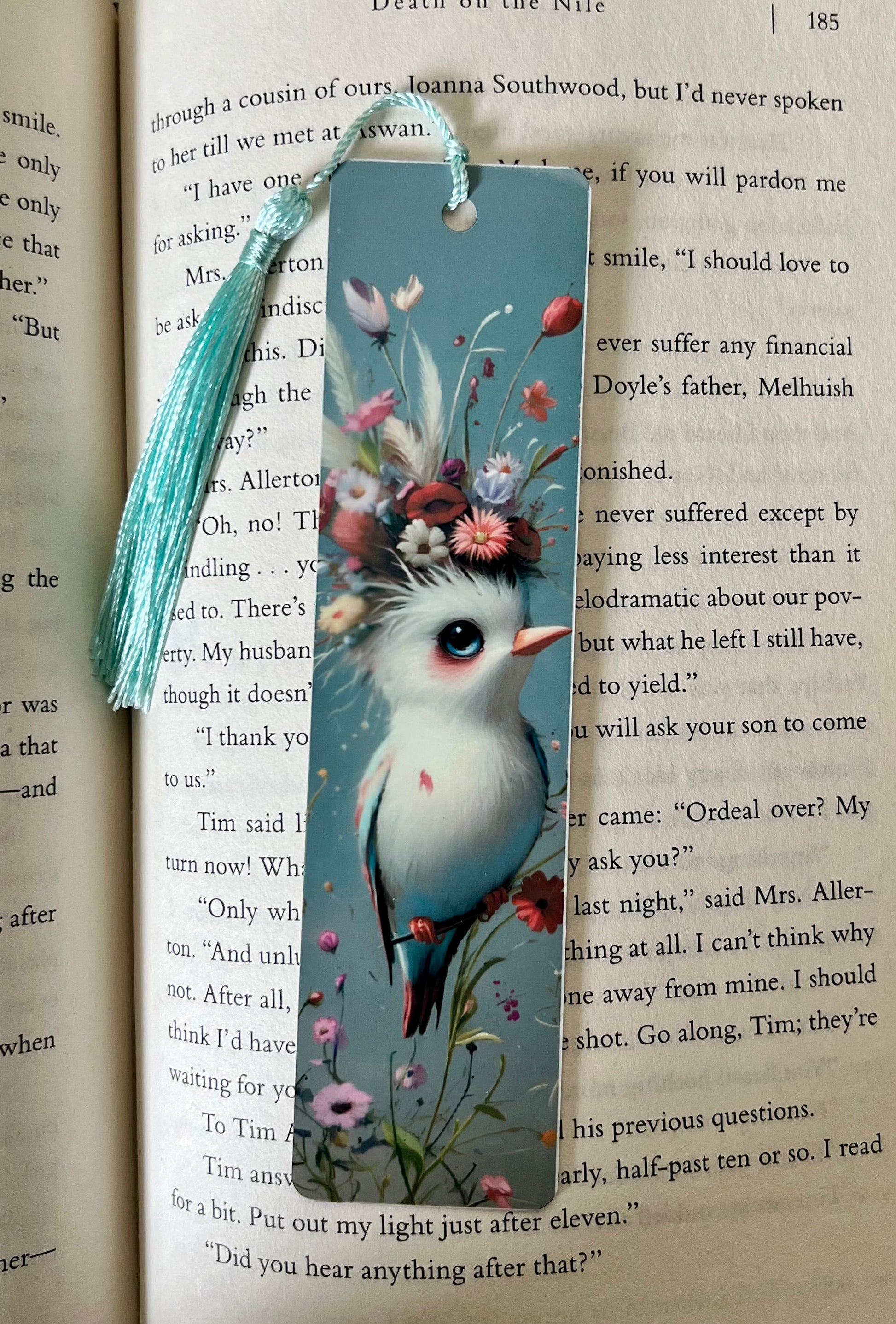 Bookmark - Metal Bookmark 1.5" x 6" with Tassel - White Bird