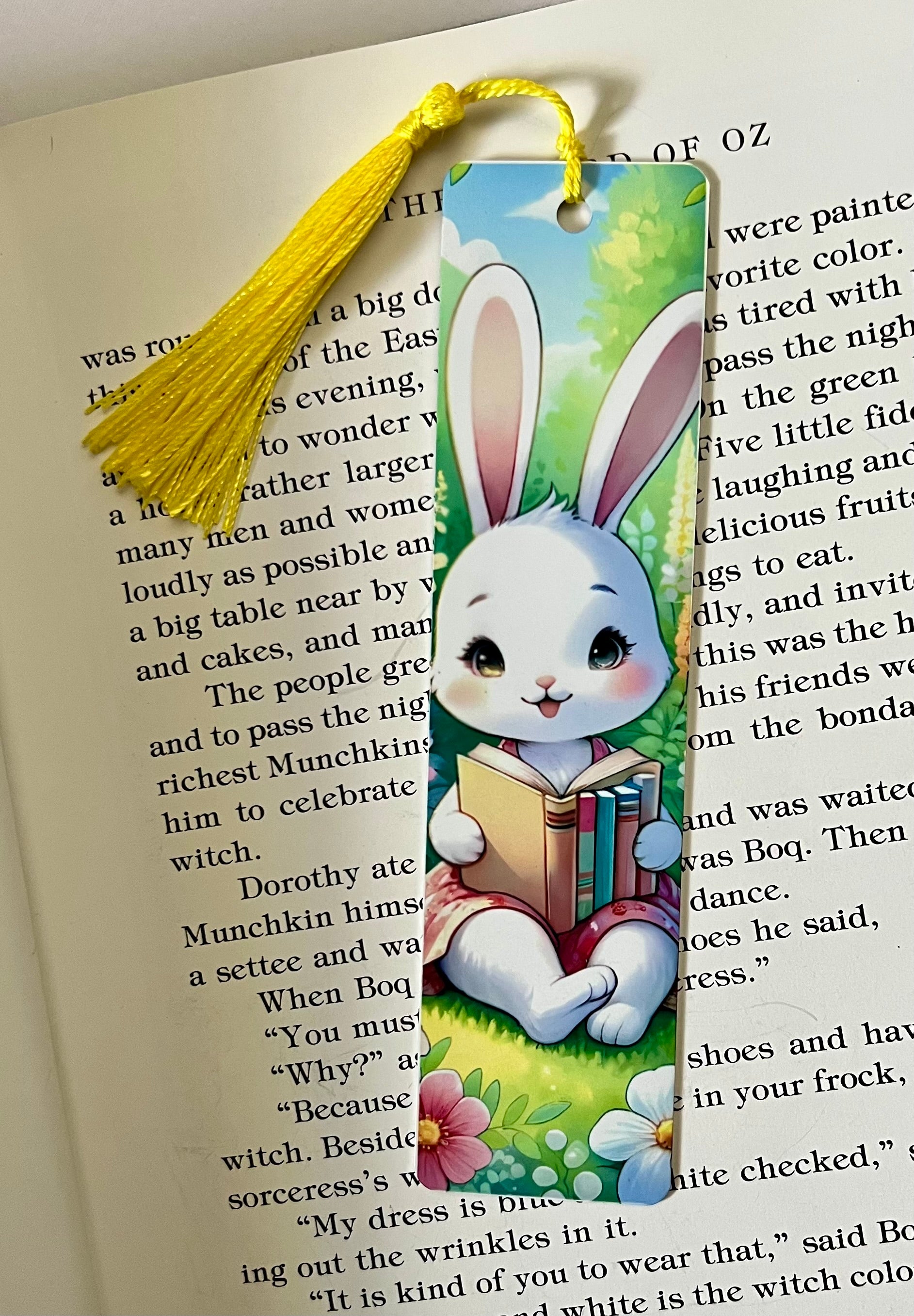 Bookmark - Metal Bookmark 1.5" x 6" with Tassel - White Rabbit