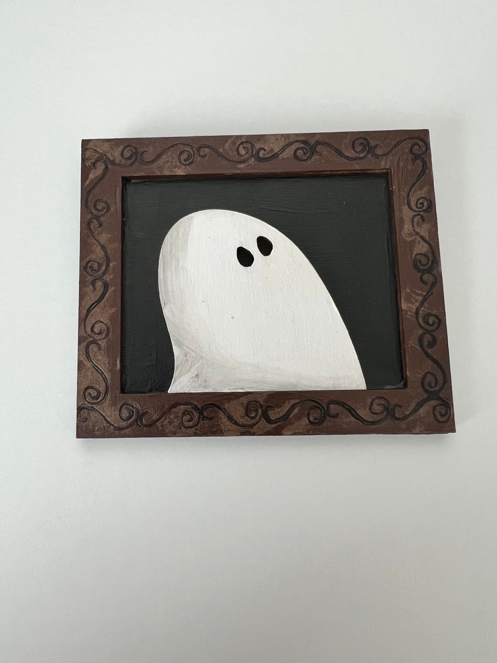 Ghost Portraits - Hand Painted Wooden Big Guy Ghostie Rectangle Shaped Frame