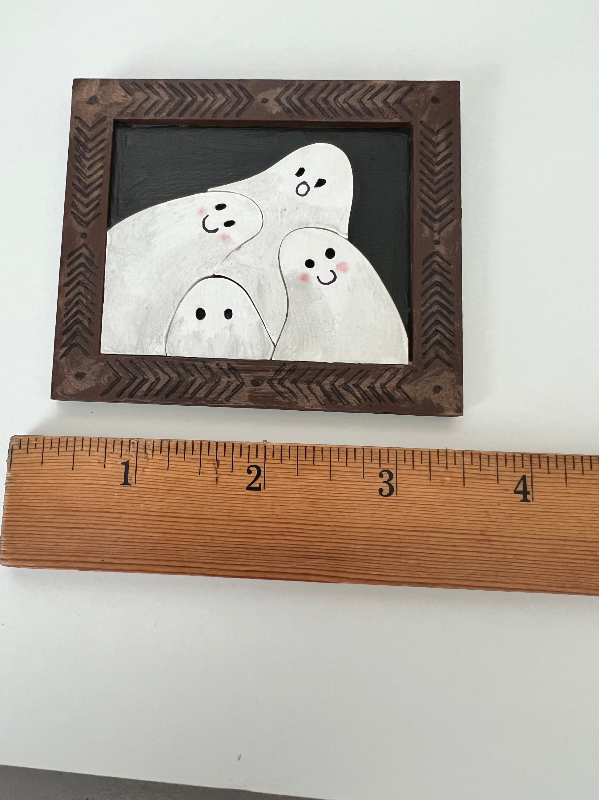 Ghost Portraits - Hand Painted Wooden Four Friendly Ghosties Rectangle Shaped Frame