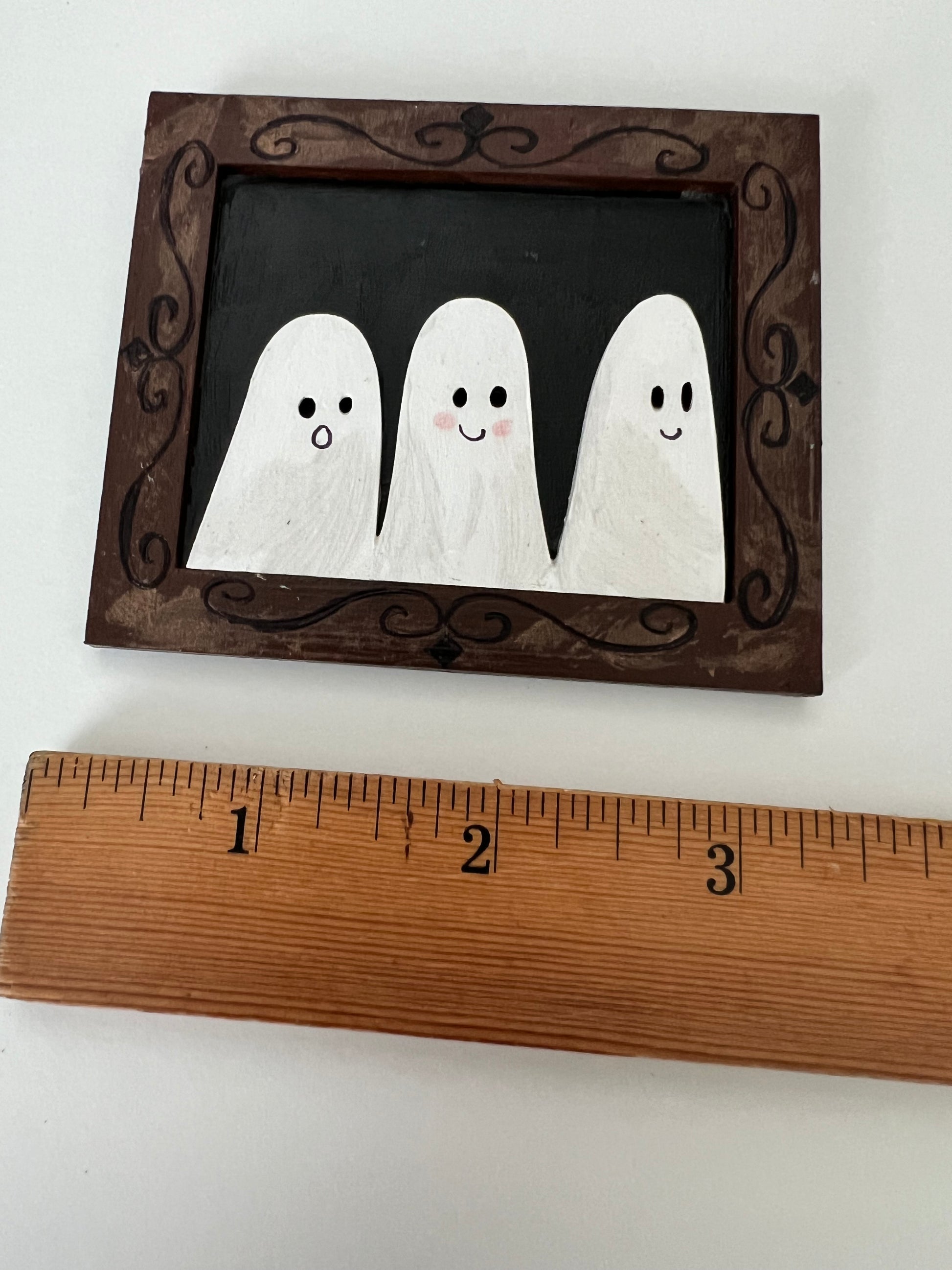 Ghost Portraits - Hand Painted Wooden Ghostie Trio Rectangle Shaped Frame