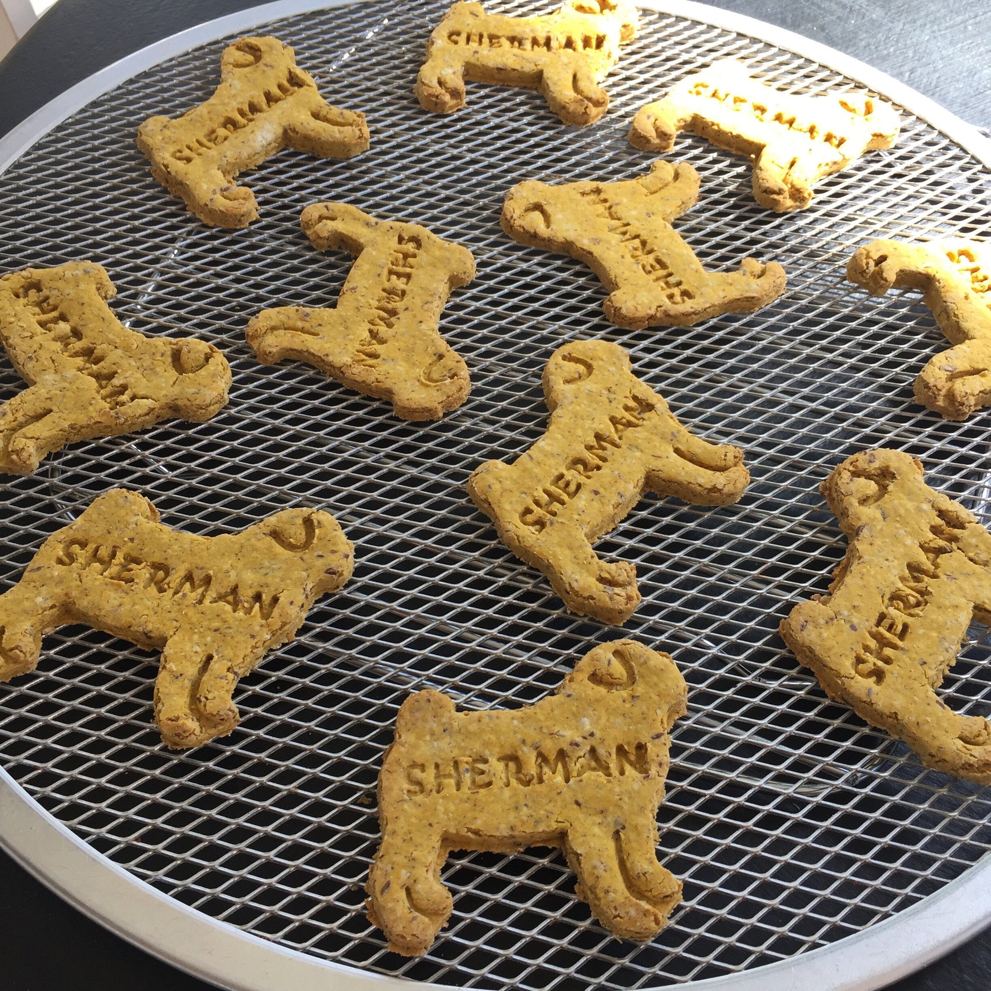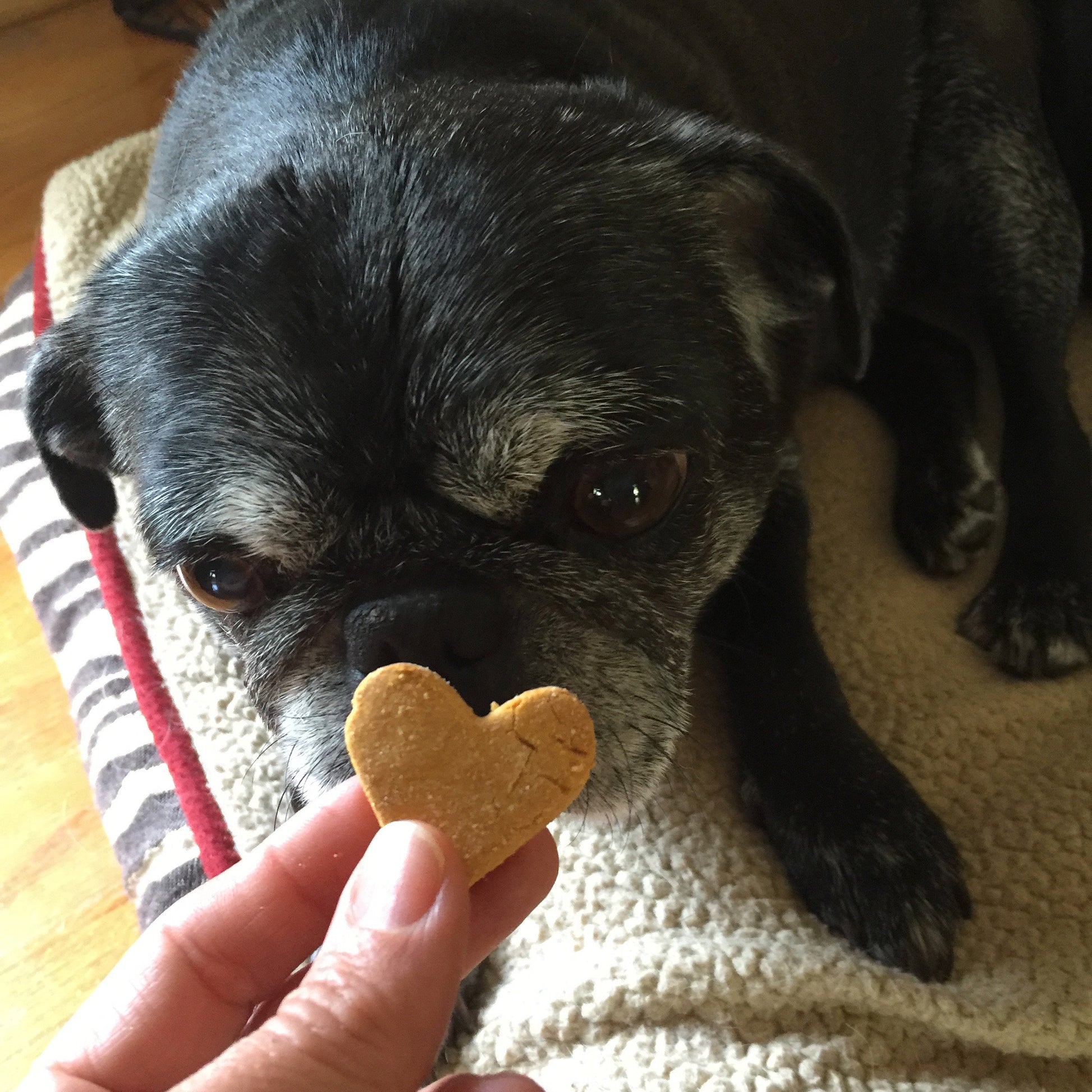 My shop is dedicated to my pugs but especially to my Sherman. He had food allergies his whole life and so I would frequently make him homemade cookies that didn’t contain all the additives and ingredients that he was allergic to.